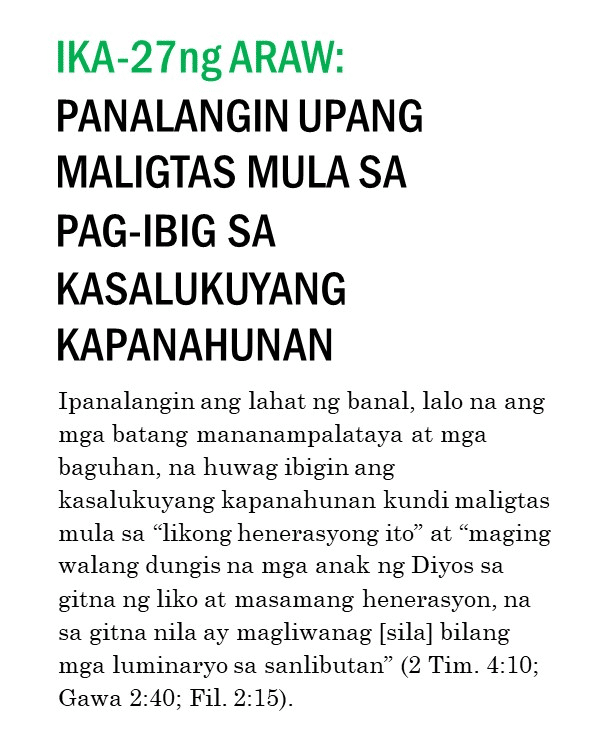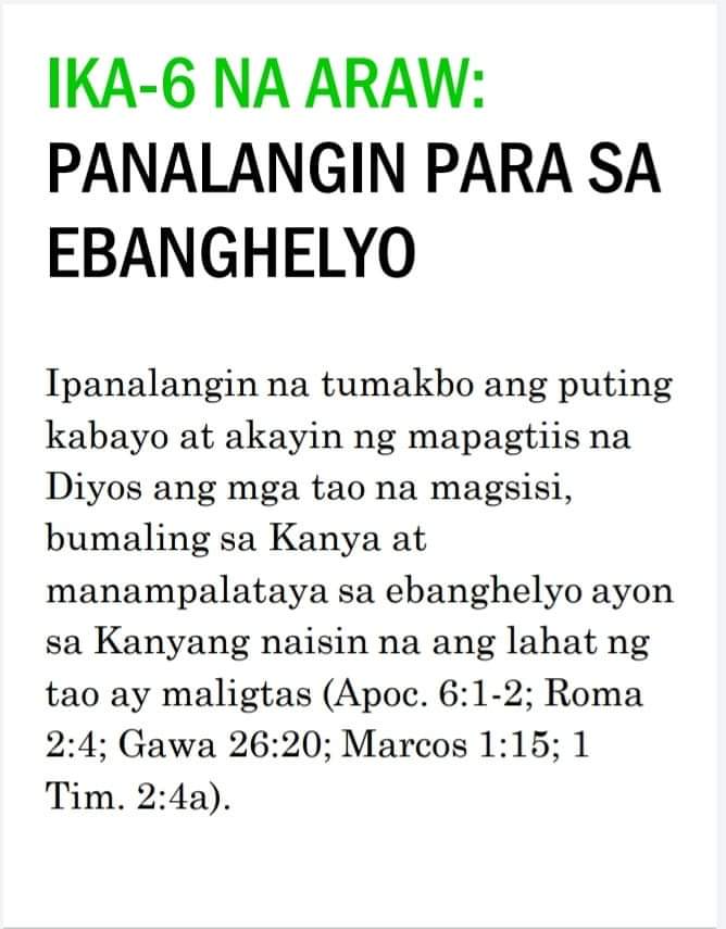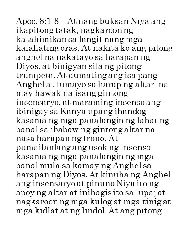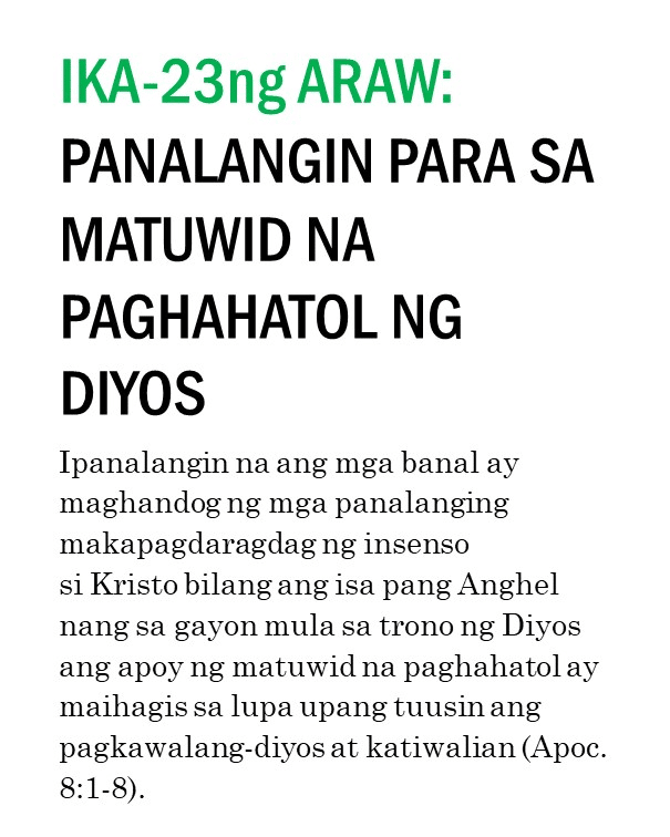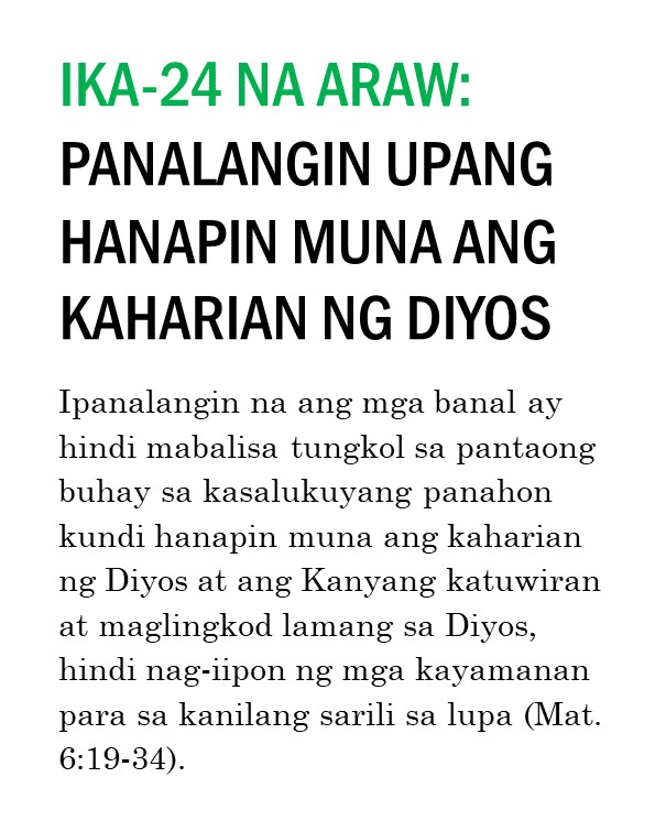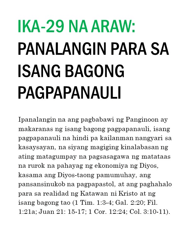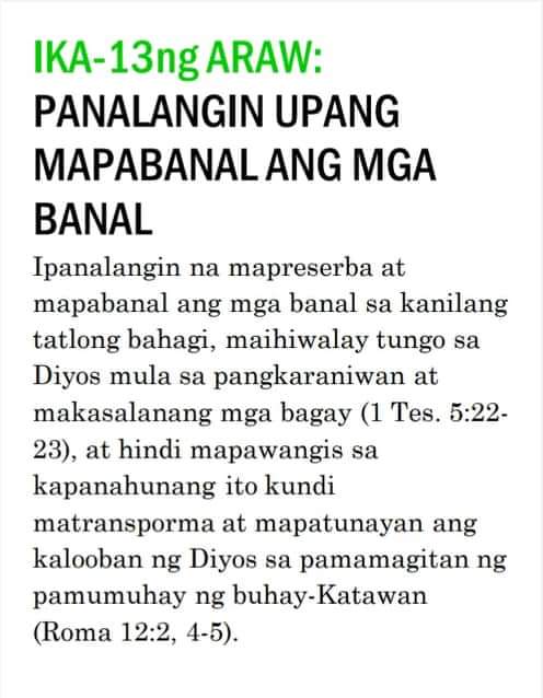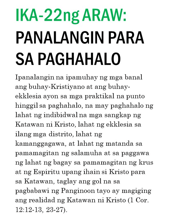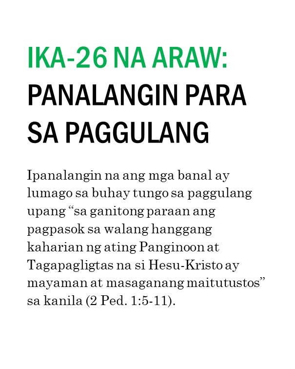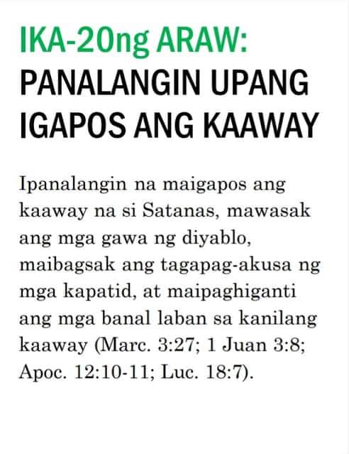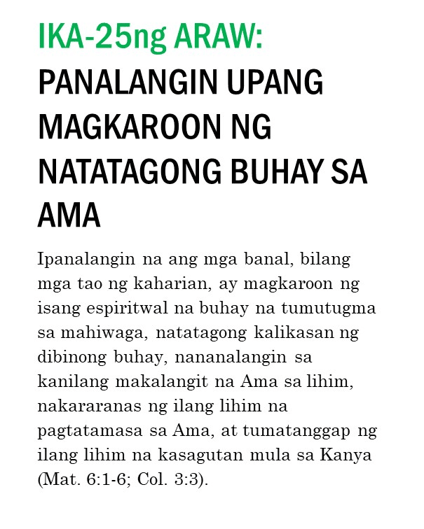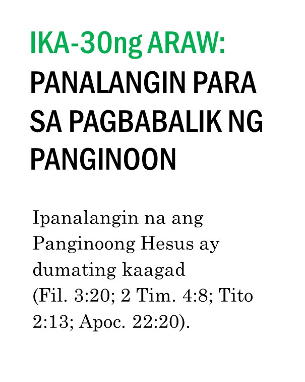 Kung ipinapalagay man nating nagtagumpay tayo o nabigo sa ating pananalangin sa lumipas na tatlumpung araw, kailangan pa nating magpatuloy at sumulong mula sa puntong ito. Masidhi naming hinihikayat ang lahat ng banal na kunin ang tatlumpung iminungkahing kabigatan sa panalangin sa unceasinglypray.org at ipanalangin muli ang mga ito sa buong buwan ng Mayo. Naniniwala kami na kung babalikan ninyong ipanalangin muli ang tatlumpung aytem na ito at ang mga kasama nitong bersikulo, matatanto ninyo na marami pa rin ang kinakailangan nating patuloy na ipanalangin nang namamagitan. Palakasin nawa ng Panginoon ang Kanyang pagbabawi at gawin tayong Kanyang bahay-panalanginan (Marc. 11:17). Purihin natin ang ating maawain at tapat na Mataas na Saserdote na mataas pa sa kalangitan (Heb. 2:17; 7:26) at nagdadala sa atin tungo sa kaisahan kasama Niya sa Kanyang makalangit na ministeryo ng pamamagitan (Sant. 5:17 at talababa).